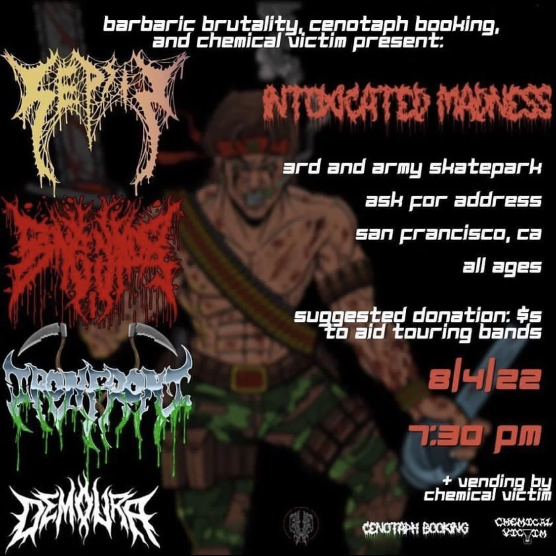 INTOXICATED MADNESS: Sepsis, Bonginator, Iron Front, and Demoura, 8/4/2022 at 3rd & Army Skatepark, San Francisco, CA