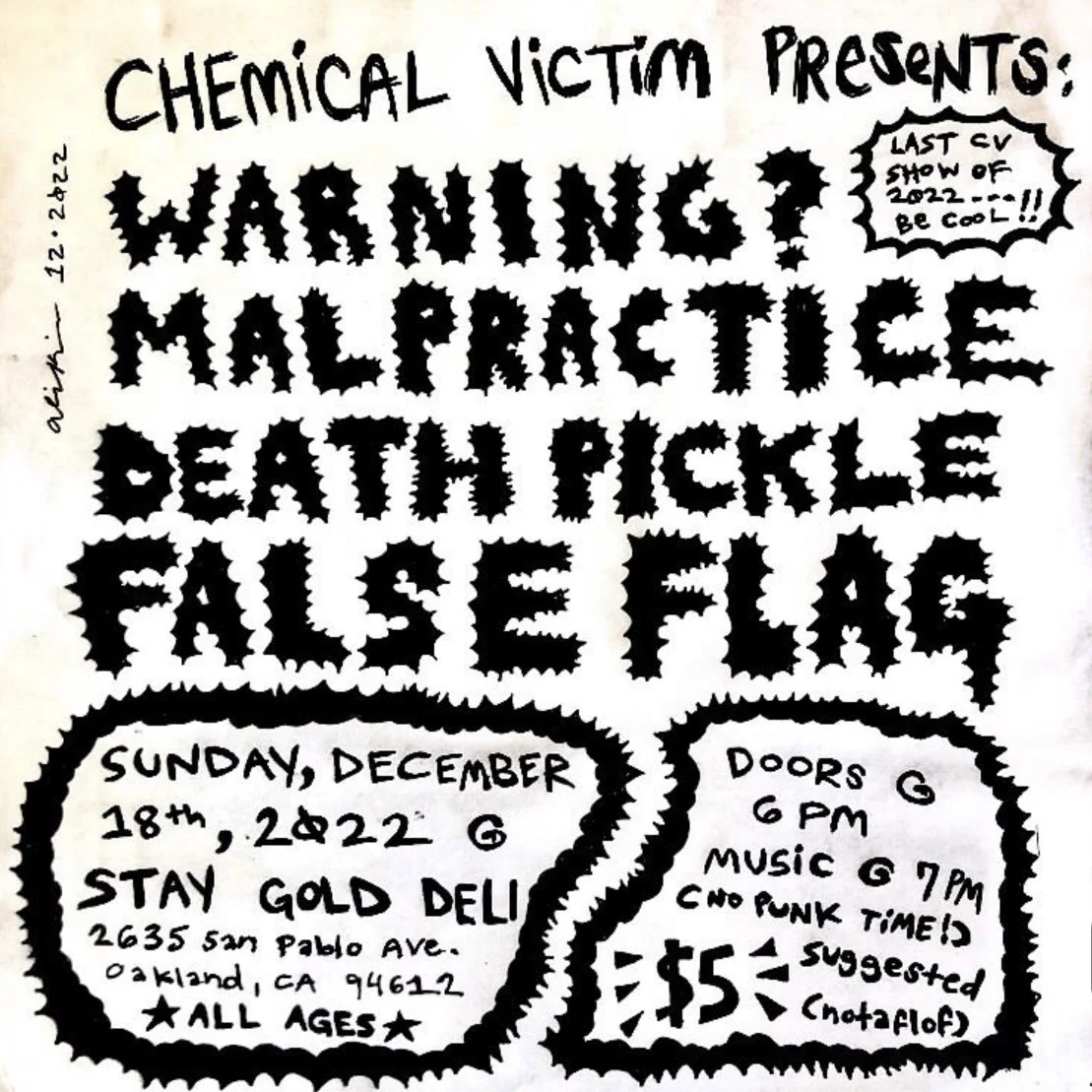 LAST CV SHOW OF 2022: Warning?, Malpractice, Death Pickle (RIP), and False Flag (burn in hell), 12/18/2022 at Stay Gold Deli in Oakland, CA