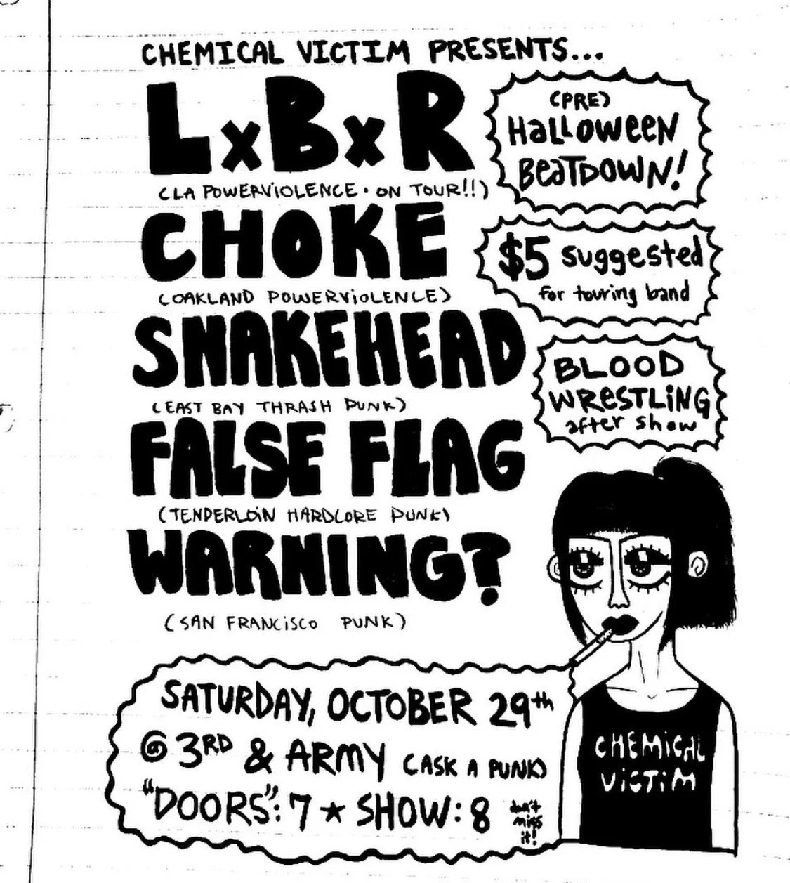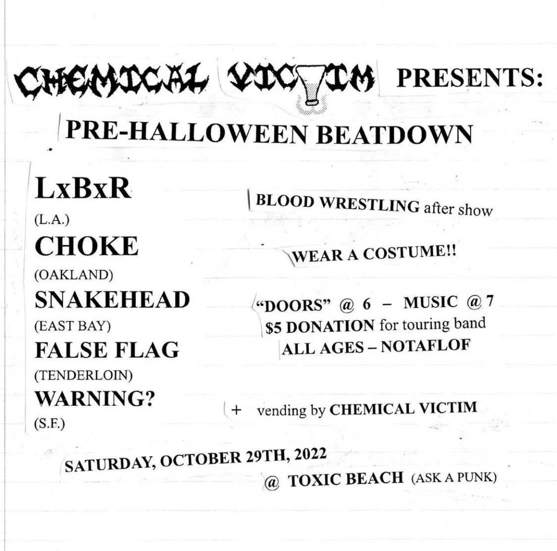 PRE-HALLOWEEN BEATDOWN: LxBxR, Choke, Snakehead (some shitty ass band), False Flag (some shitty ass band), and Warning, 10/29/2022 at Toxic Beach, San Francisco, CA